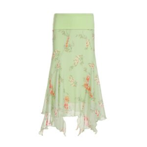Falda asimétrica con volantes y estampado floral abstracto