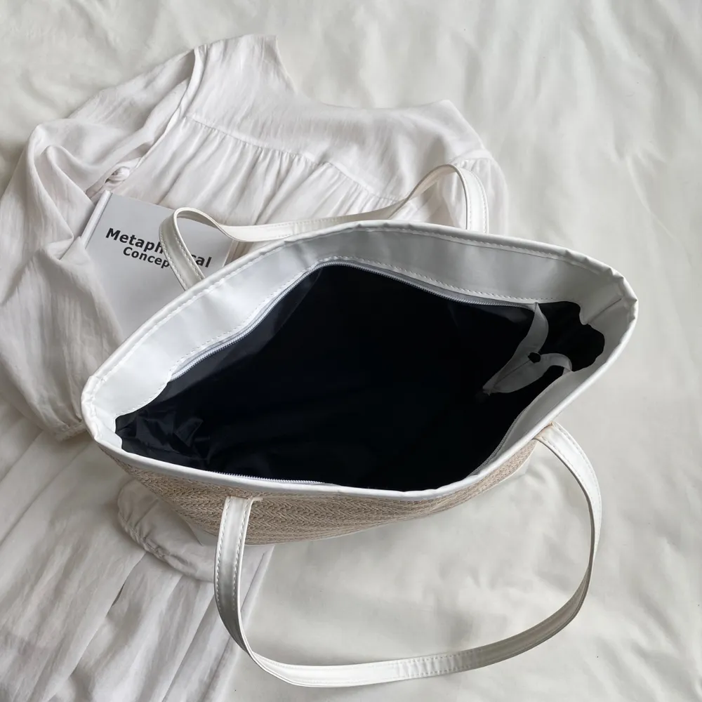 Bolso tote grande de rafia trenzada con asas de piel – estilo natural y elegante