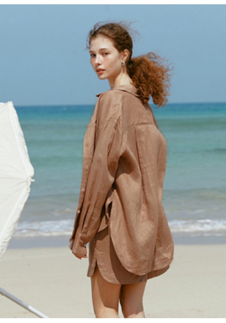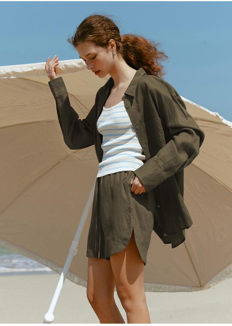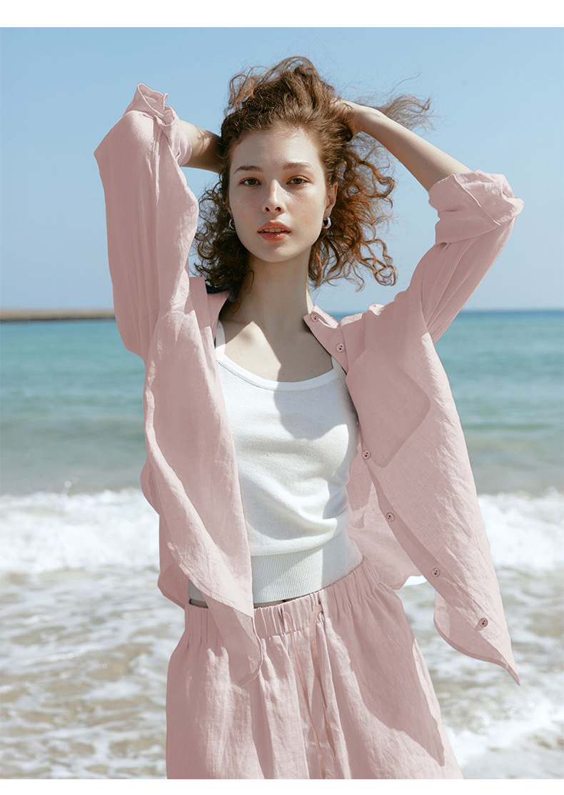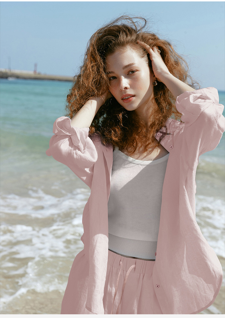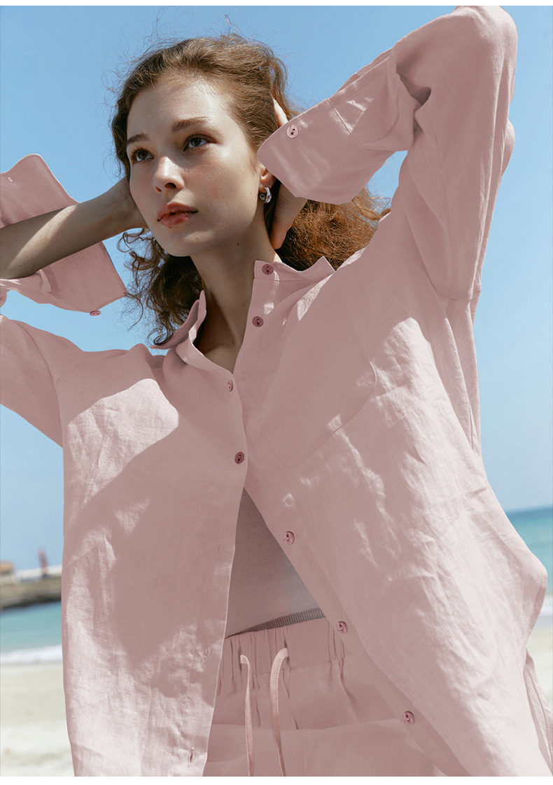 Camisa ligera y fluida ideal para primavera y verano, confeccionada en tejido mixto de lyocell y lino. Su diseño de corte amplio, cuello clásico y botones frontales se complementa con tratamiento antiarrugas y tacto fresco. Perfecta para looks japoneses y coreanos, aporta versatilidad y elegancia informal en climas cálidos.