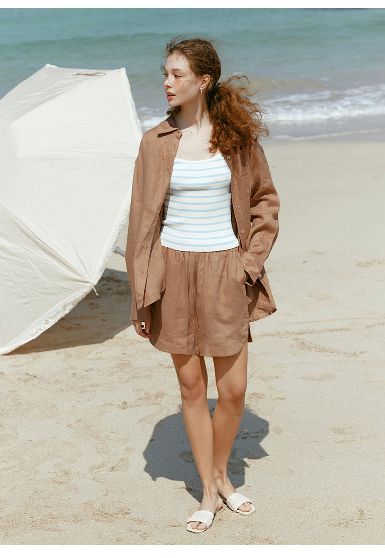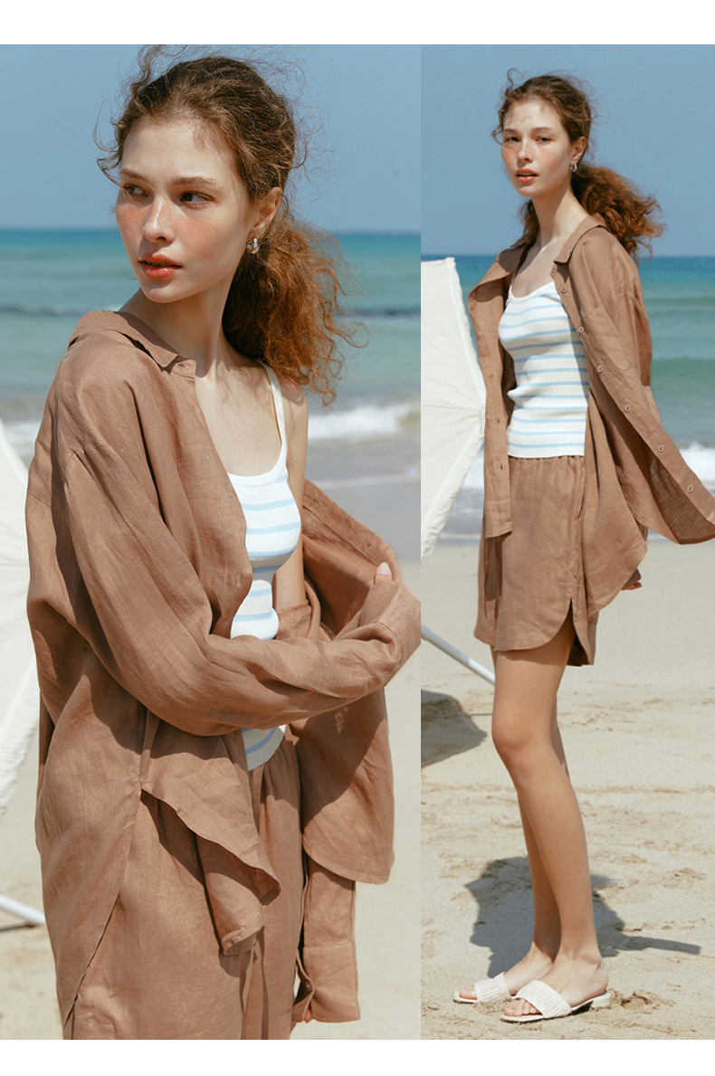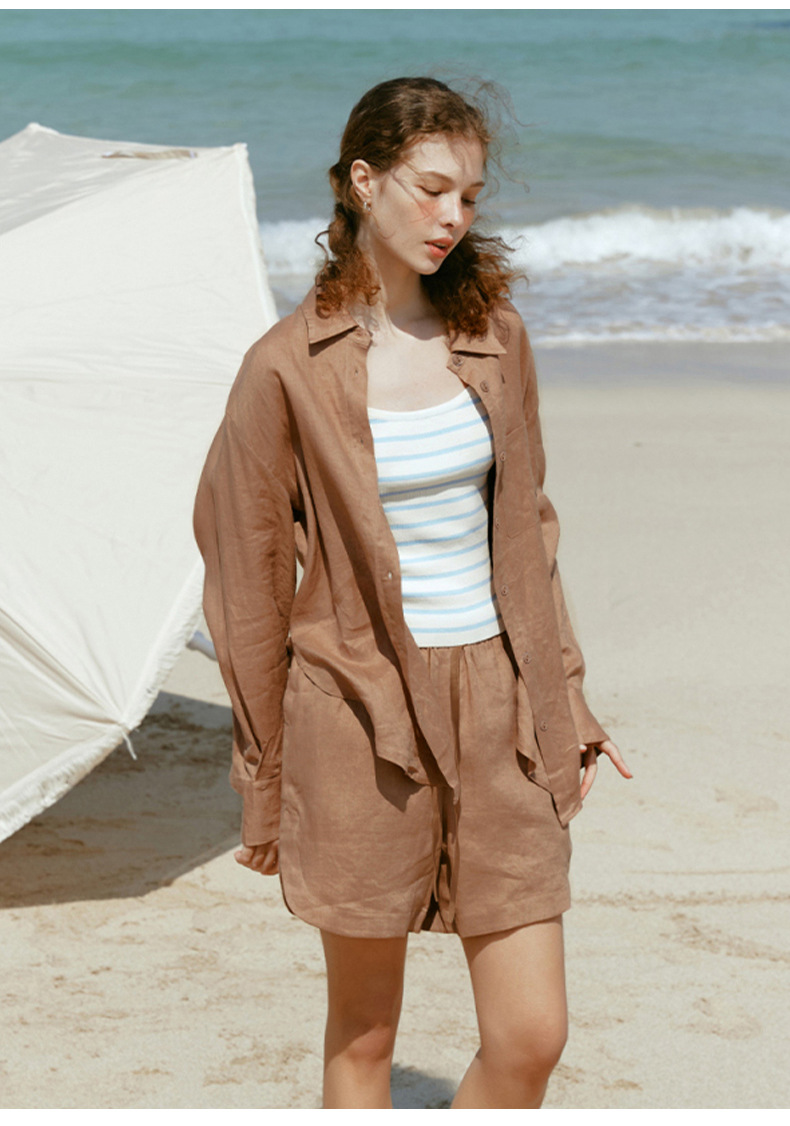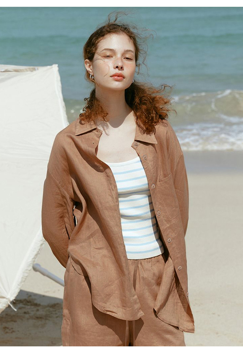 Camisa ligera y fluida ideal para primavera y verano, confeccionada en tejido mixto de lyocell y lino. Su diseño de corte amplio, cuello clásico y botones frontales se complementa con tratamiento antiarrugas y tacto fresco. Perfecta para looks japoneses y coreanos, aporta versatilidad y elegancia informal en climas cálidos.