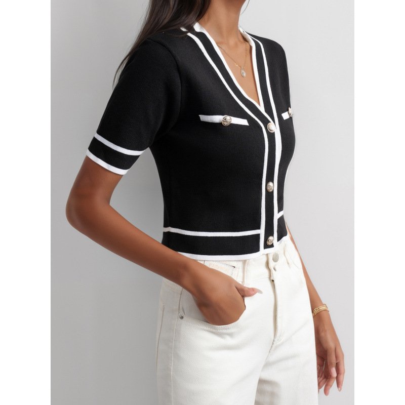 Nombre del producto: Bloqueo de color con escote en V francés, temperamento en blanco y negro