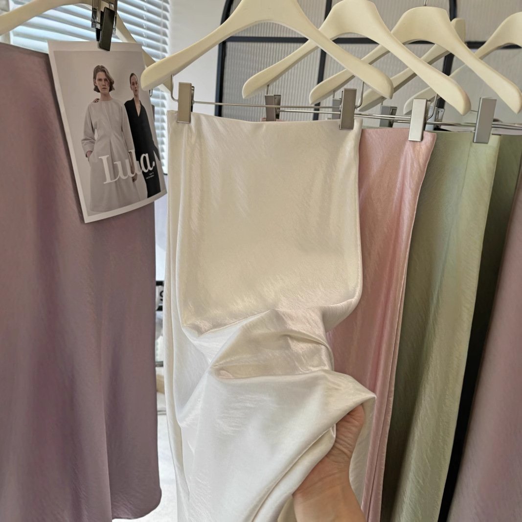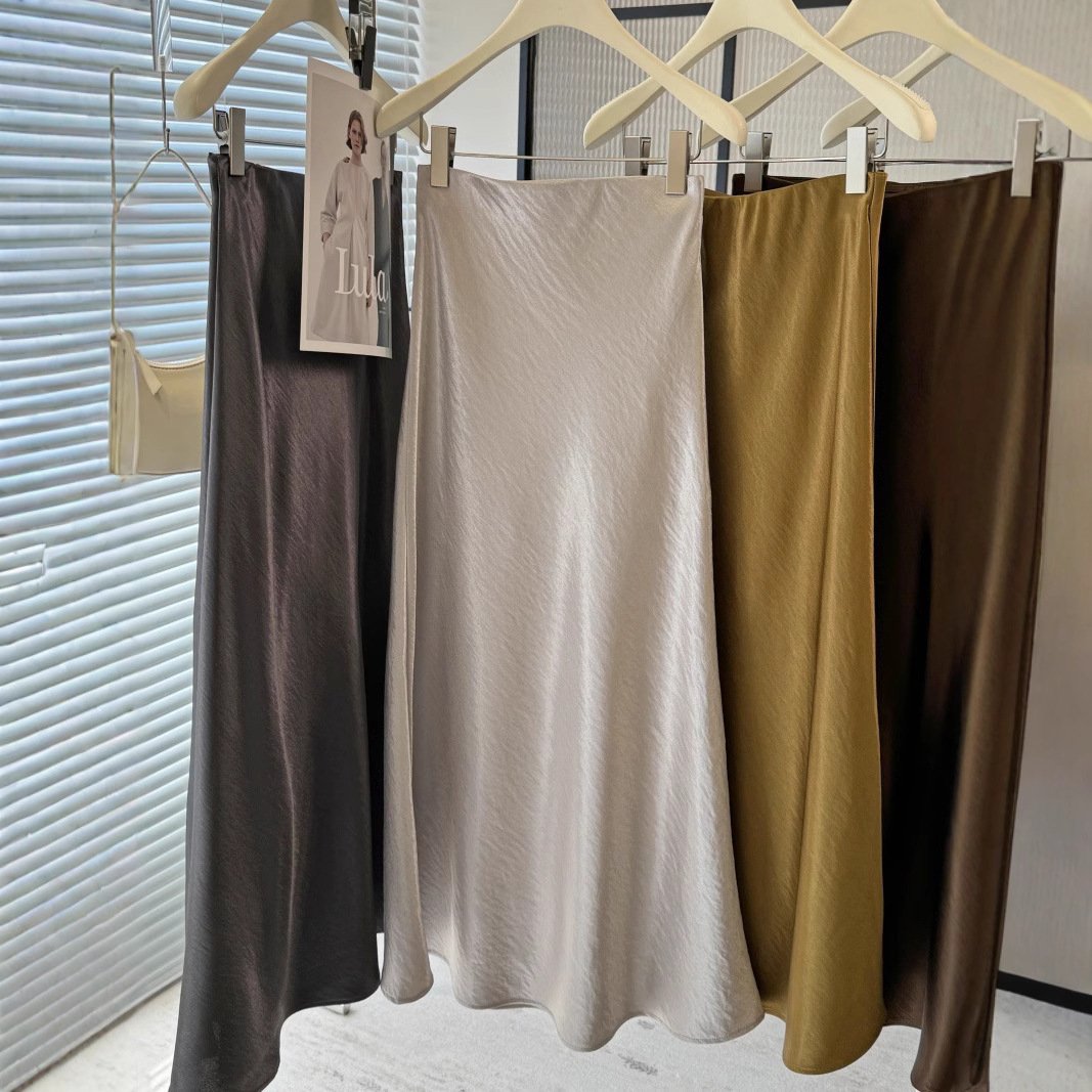 Falda de satén tipo cola de pez — diseño elegante con caída fluida y acabado brillante