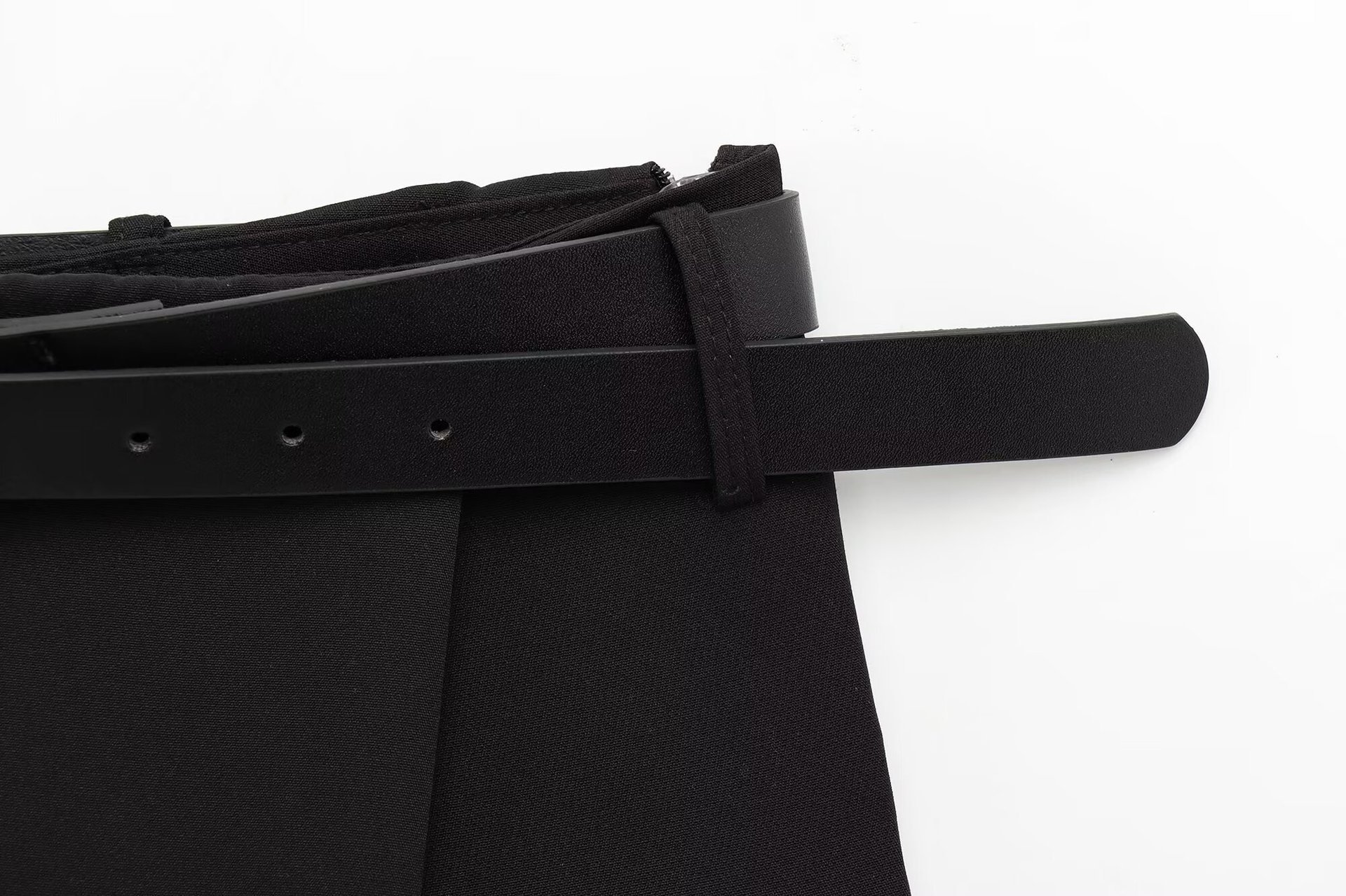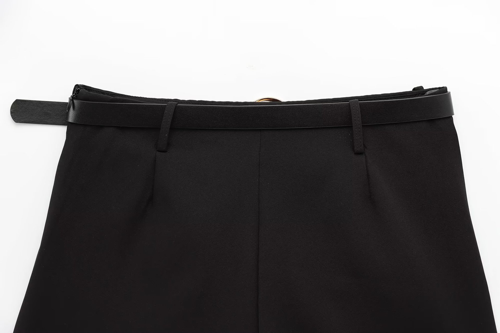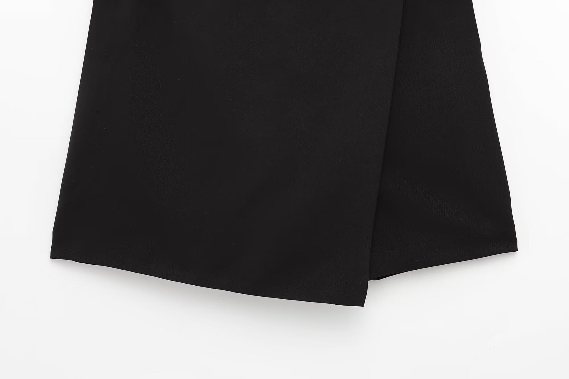 Diseño versátil y femenino con un toque dulce. Esta falda-pantalón combina la elegancia de una falda con la comodidad de un pantalón corto. El cinturón ajustable y los botones decorativos en la parte delantera le dan un aire sofisticado, ideal para looks urbanos o más arreglados.