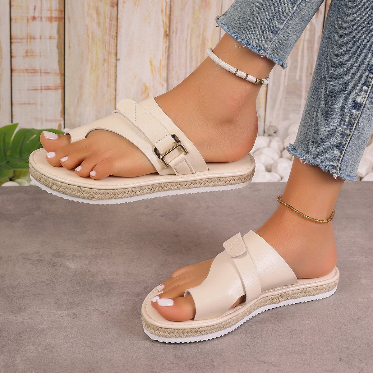 Sandalias con anillo en el dedo y hebilla decorativa