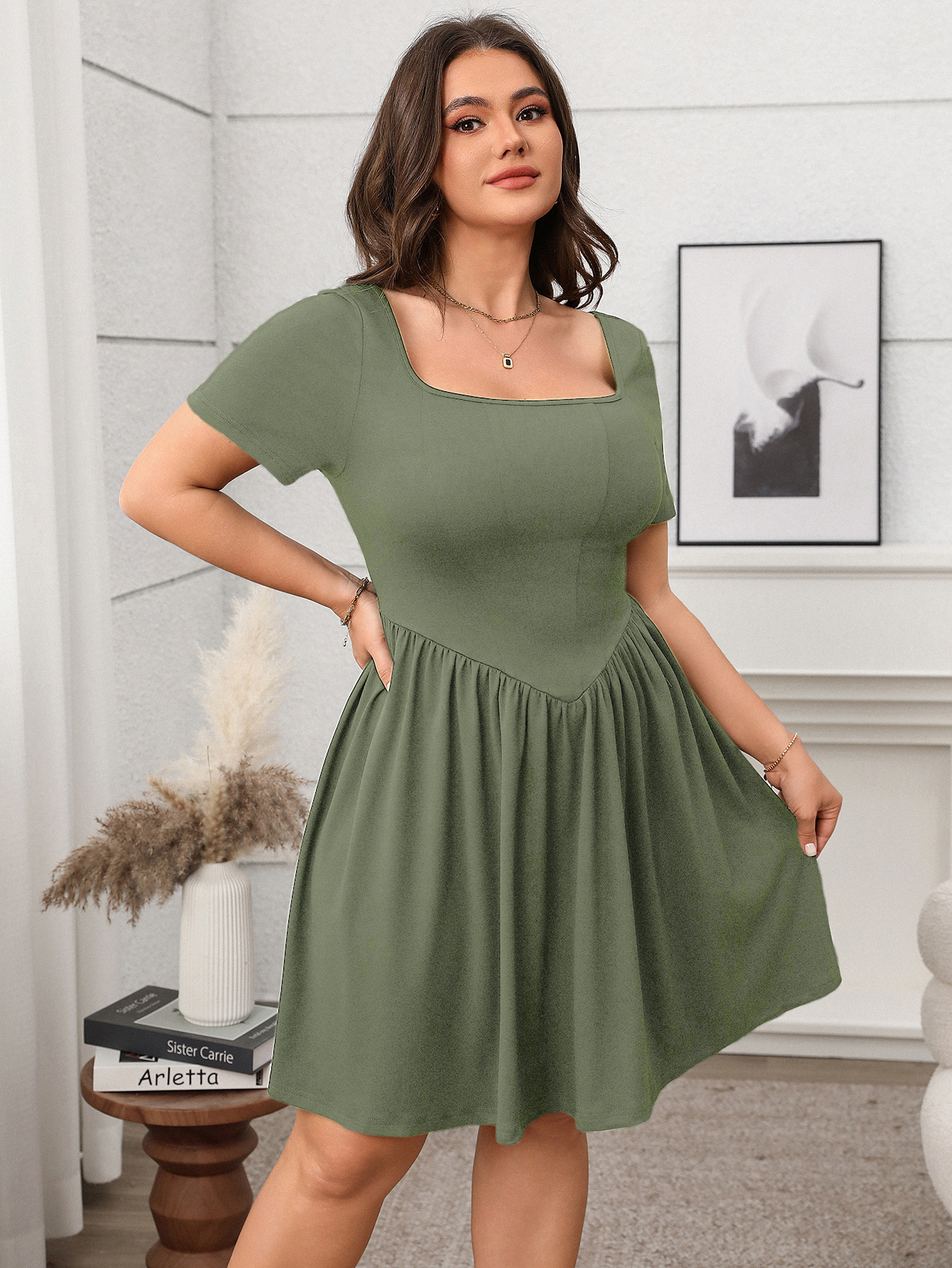 Diseñado para mujeres de talla grande que desean vestir con estilo y comodidad. Este vestido de corte A-line con cuello cuadrado ofrece una silueta favorecedora, ideal tanto para el entorno profesional como para eventos formales.