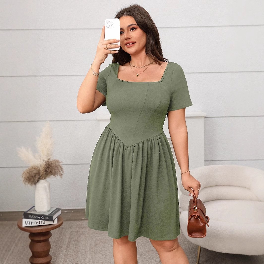 Diseñado para mujeres de talla grande que desean vestir con estilo y comodidad. Este vestido de corte A-line con cuello cuadrado ofrece una silueta favorecedora, ideal tanto para el entorno profesional como para eventos formales.